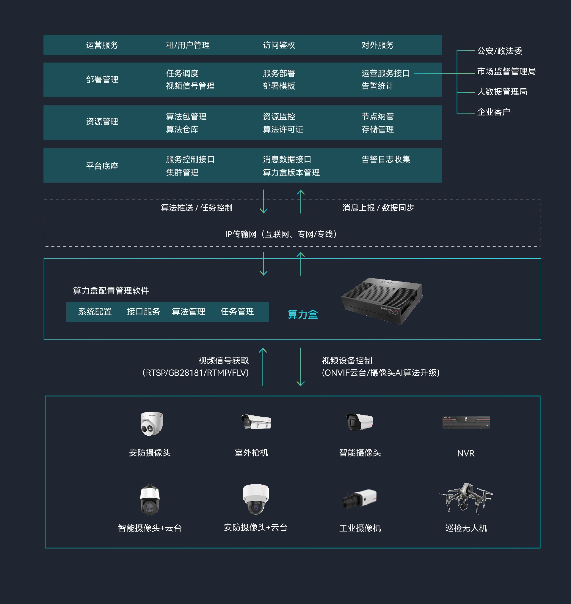 (中国)推出的Sage Basic A1边缘计算微服务器,专为智能视频应用而设计。该服务器支持多路视频编解码,高效适配市 场上所有AI算法,能够轻松应对各类智能视频分析任务。其应用领域广泛,涵盖智慧城市、智慧园区、智慧乡村、智慧校园 以及智慧安防等多个AI应用场景。此外,视频AI边缘算力盒产品包含云边协同管理系统、边缘算力盒配置管理软件以及算力 盒终端三部分,能够实现边缘侧的AI处理和快速响应,同时借助云边协同技术,可随时随地灵活部署检测任务和算法,为用 户带来前所未有的便捷和高效体验。
